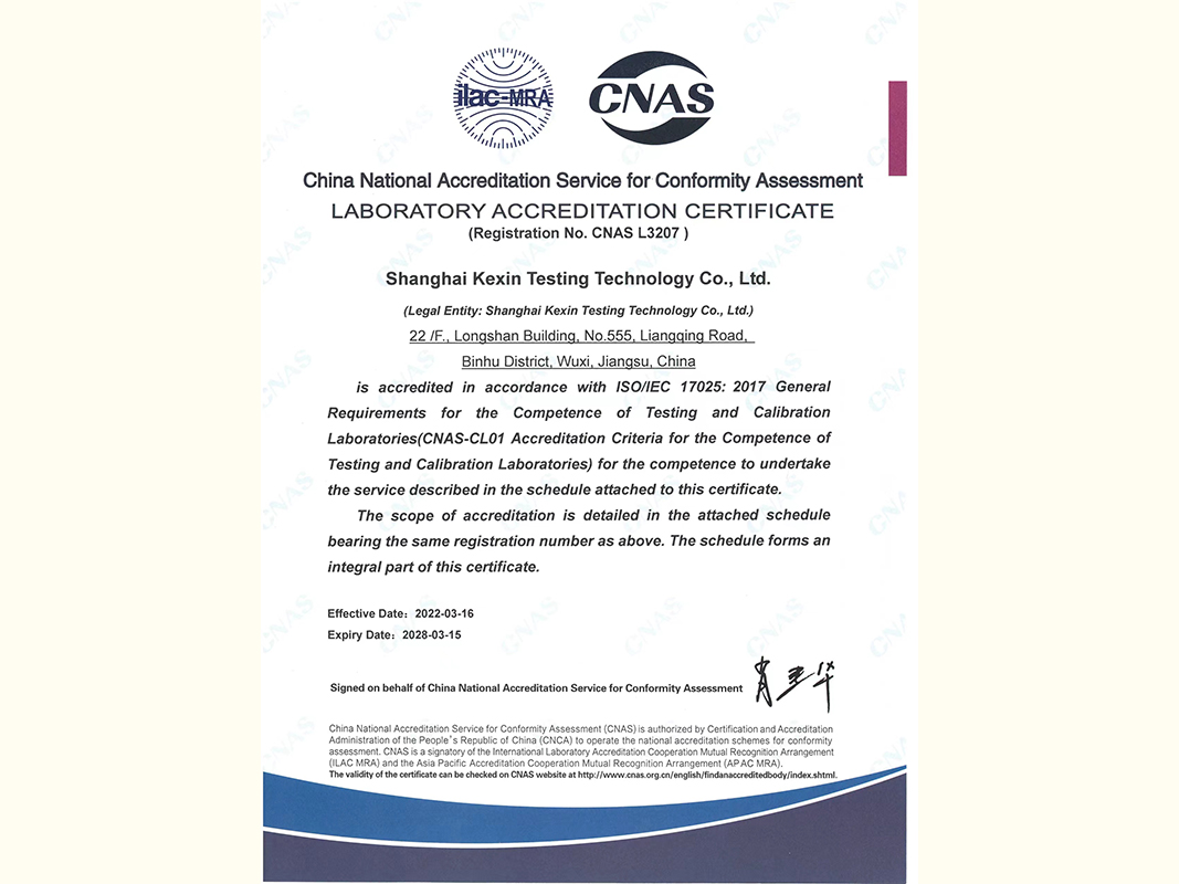 公司參與了6項國家標準的編制以及四本技術(shù)專著的出版發(fā)行,公司還獲得一項科技進步一等獎并擁有數(shù)項發(fā)明專利。早在2007年就已經(jīng)通過國家實驗室認可,認可證書號(NO.CNAS L3207),檢測報告可以使用國家認可標志(CNAS), 以及國際互認標識(ilac-MRA),在國內(nèi)調(diào)測試領(lǐng)域中享有較高的聲譽,是客戶值得信賴的合作伙伴。